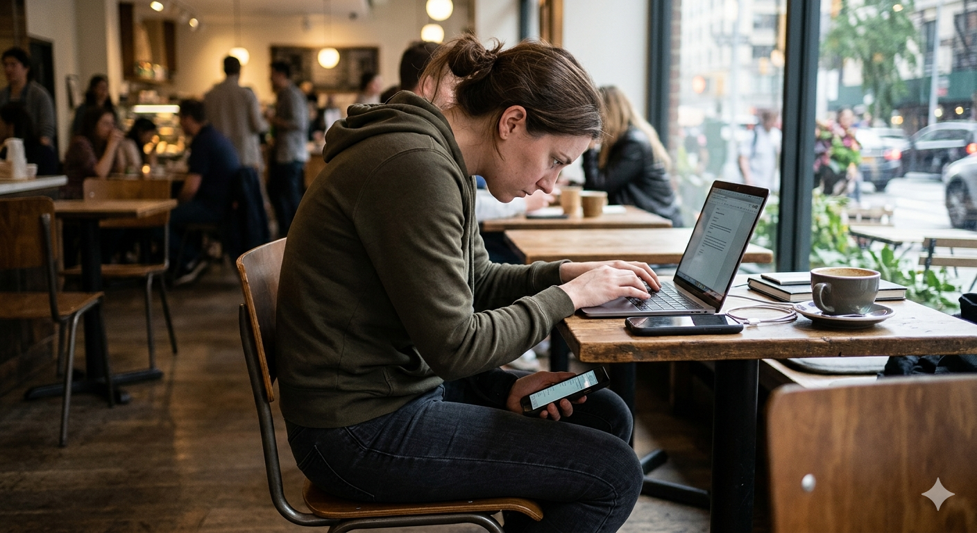 스마트폰과 노트북을 사용하는 현대인의 나쁜 자세