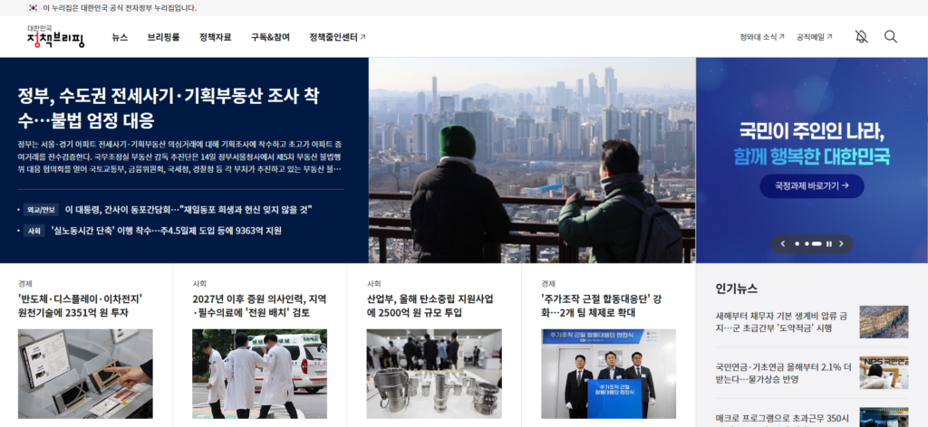 대한민국 정책브리핑 홈페이지 메인화면