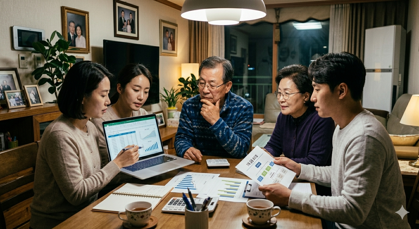 가족들과 금융 계획을 논의하는 모습