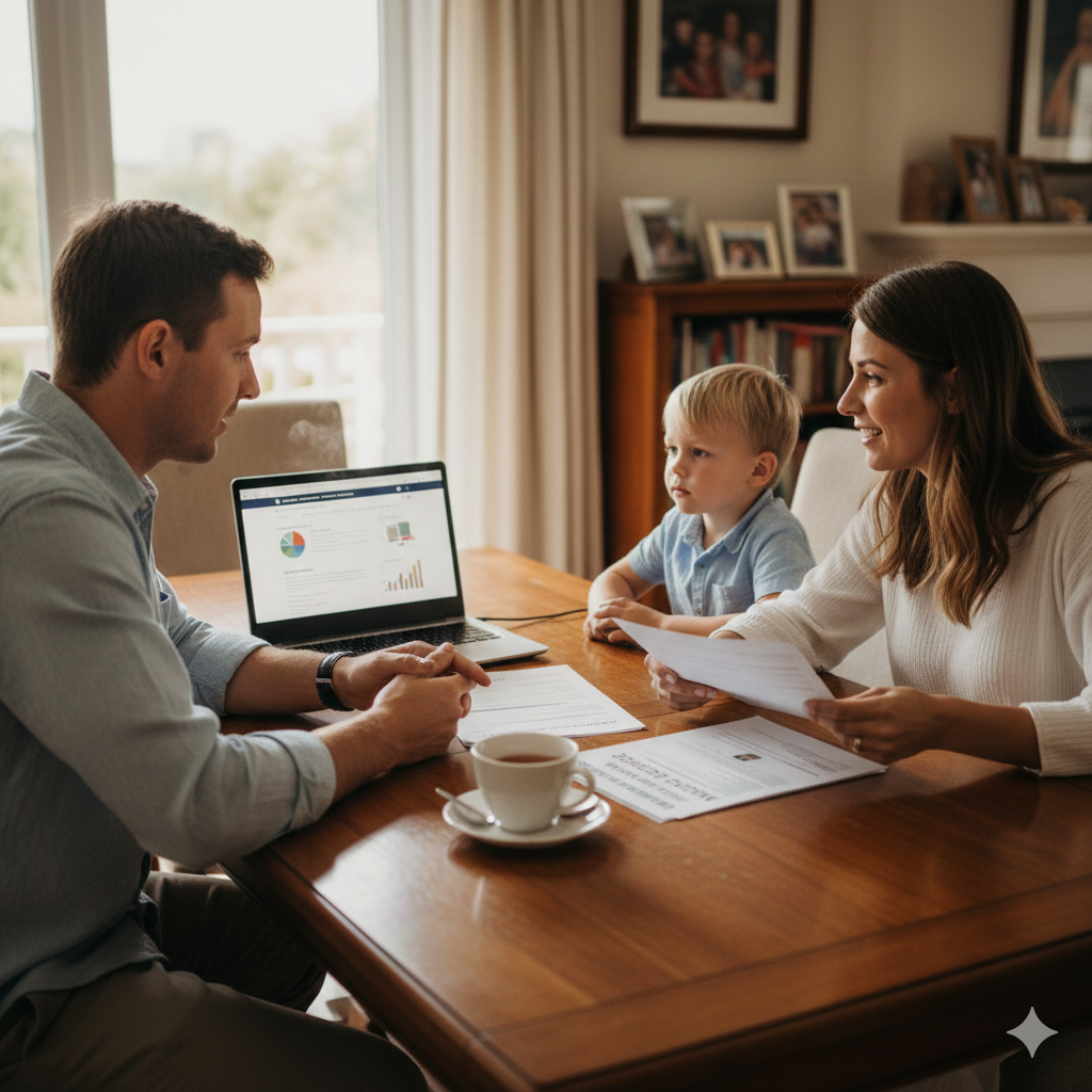 가족이 모여 복지 혜택을 논의하는 모습