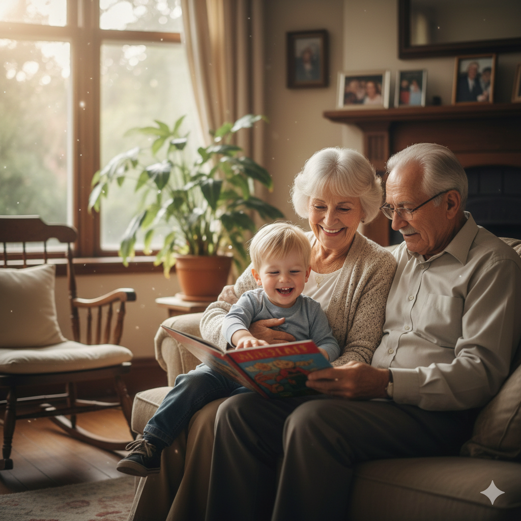 조부모가 손주를 돌보며 행복해하는 모습