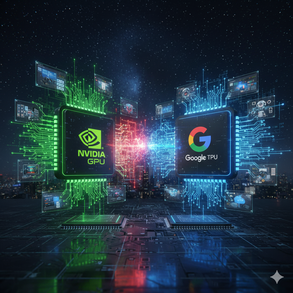 엔비디아와 구글 AI칩의 경쟁 구도를 나타내는 모습