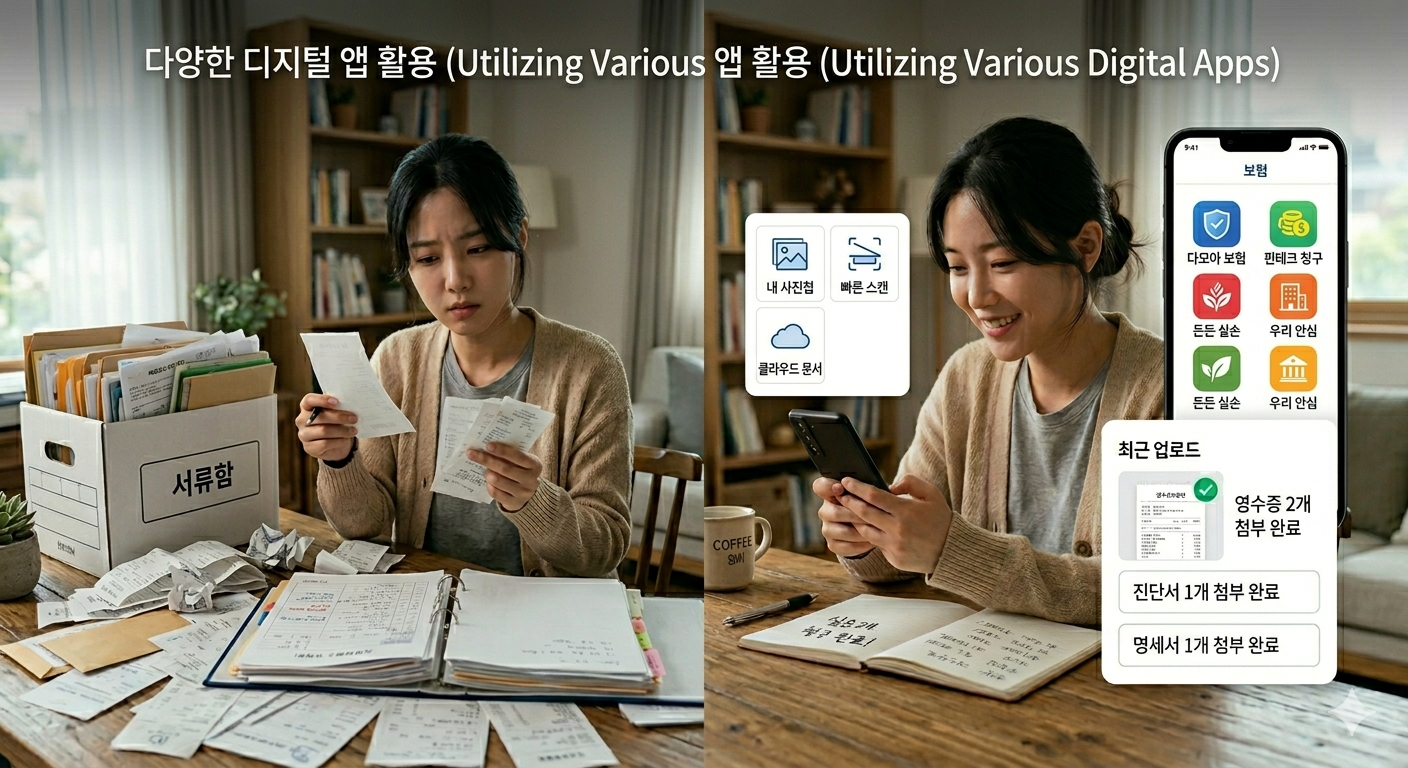 다양한 앱을 활용하여 실손보험을 청구하는 모습