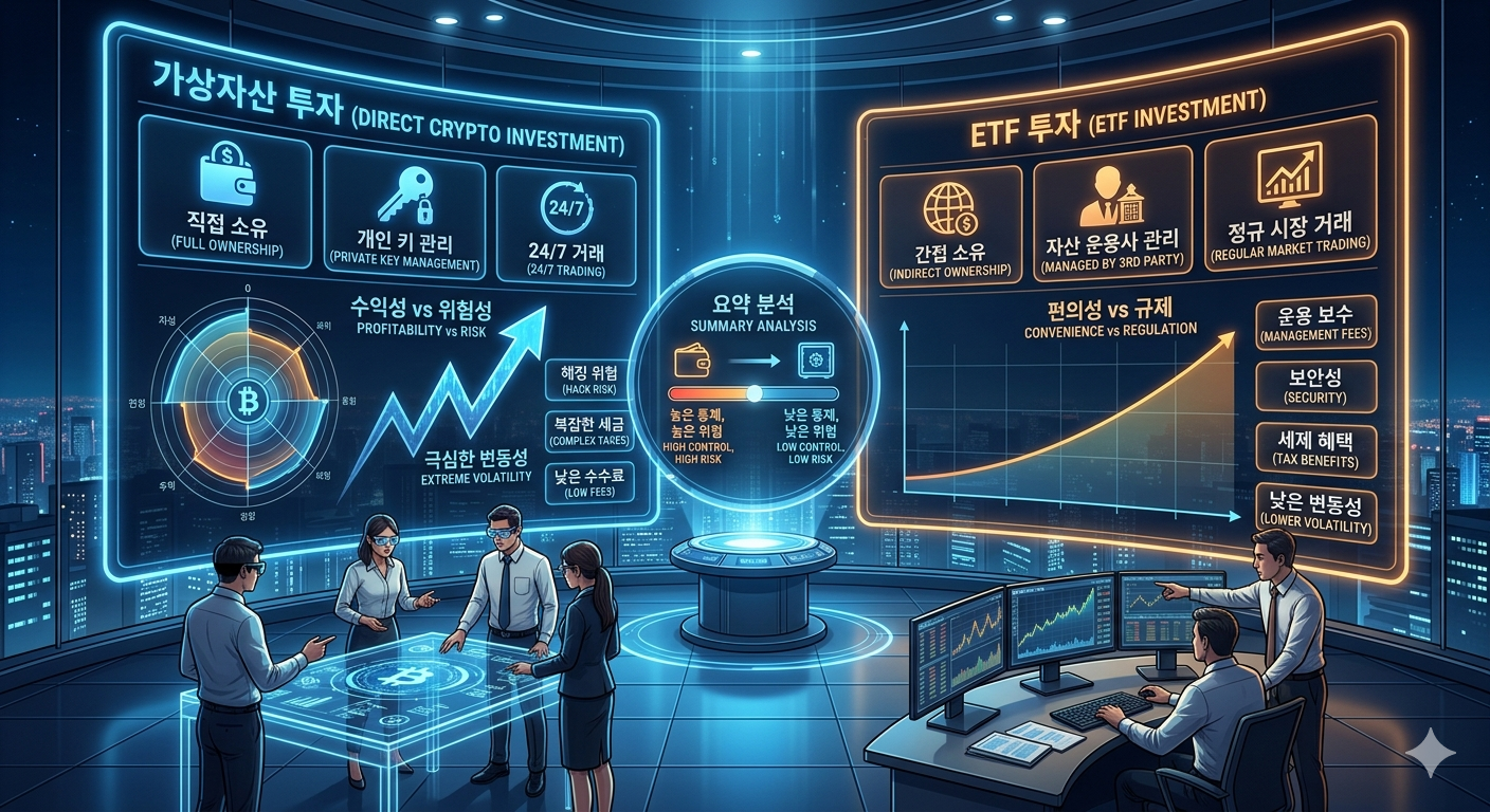 가상자산 투자와 ETF 투자를 비교 분석하는 모습