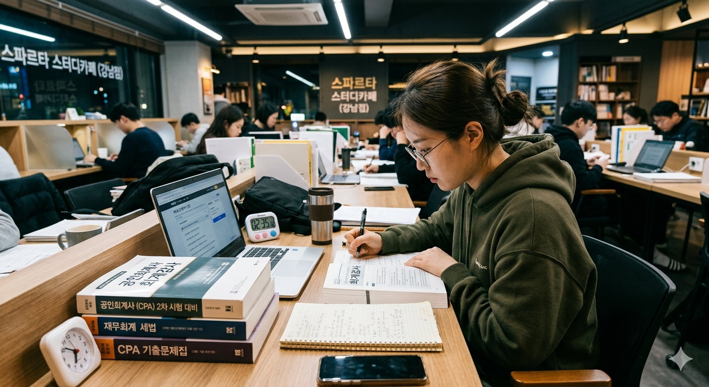 자격증 취득을 위해 공부하는 현대 한국인의 모습