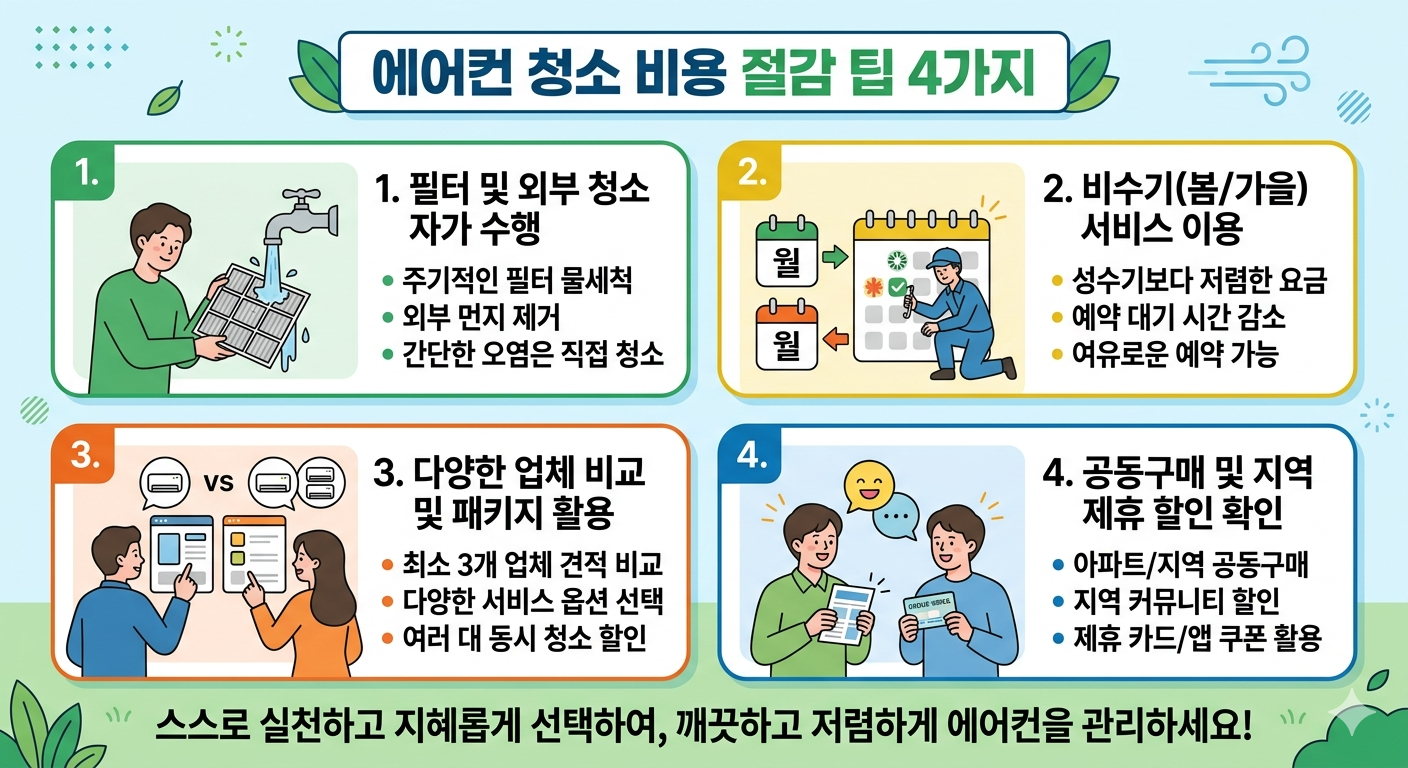 에어컨 청소 비용 절감 팁을 보여주는 모습