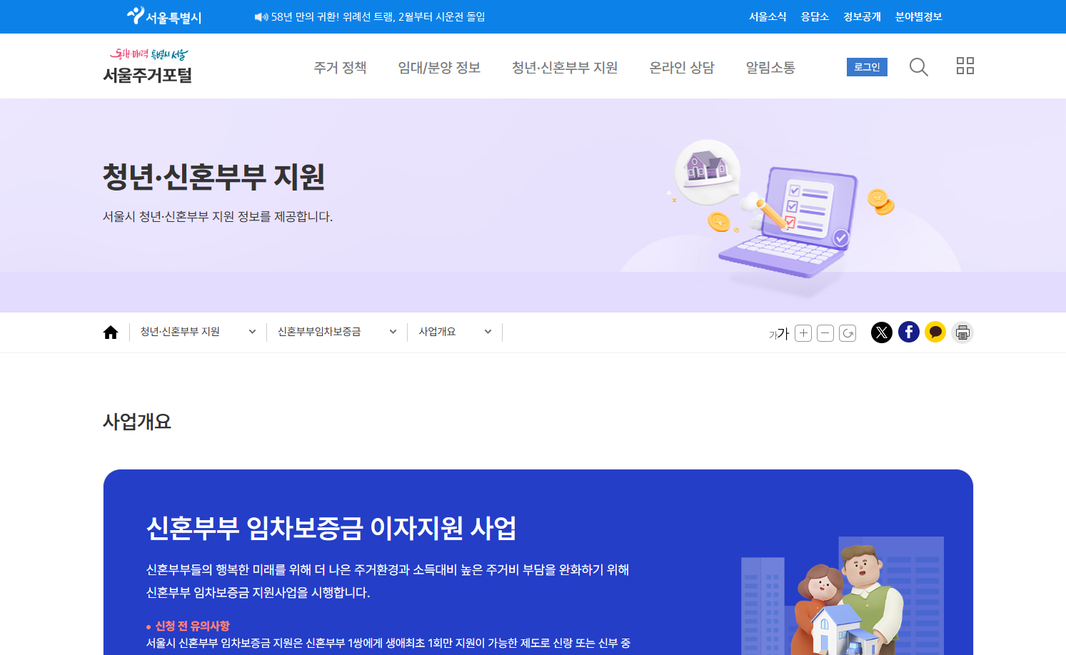 서울주거포털 홈페이지 관련 내용