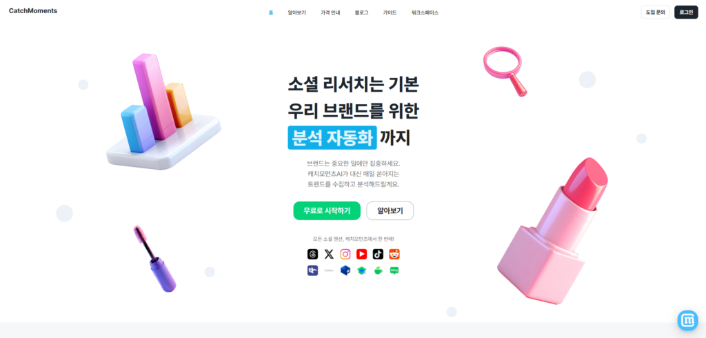 캐치모먼츠는 이미 여러 소비재나 뷰티 브랜드들과 함께 일하면서 좋은 평가를 받고 있습니다. 작은 회사 운영자들이 온라인에서 자기 브랜드에 대한 사람들의 대화를 실시간으로 파악하고, AI가 만들어준 답변으로 손님들과 더 잘 소통할 수 있도록 돕고 있습니다.