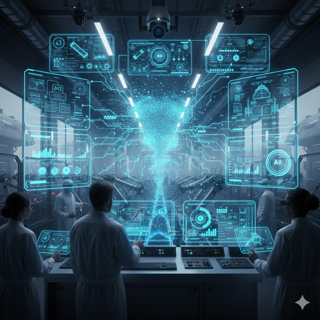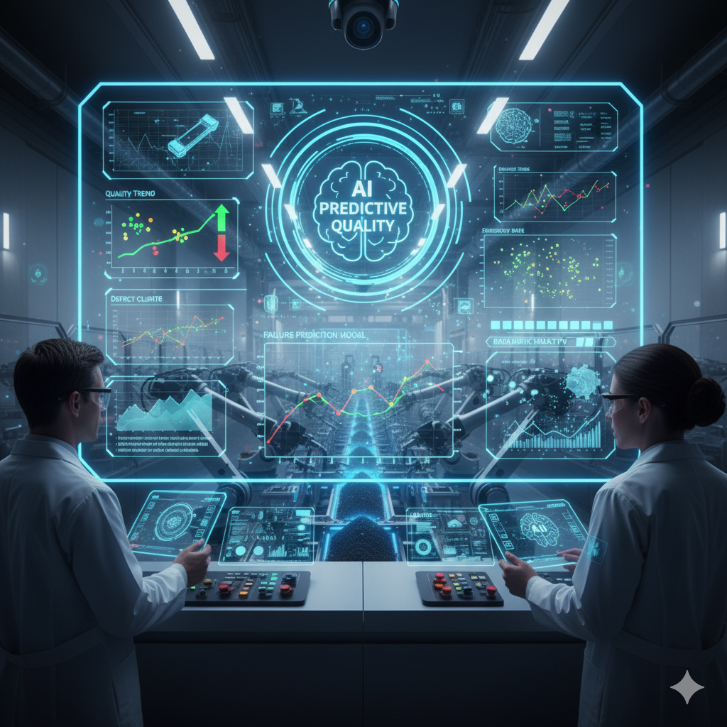 AI가 제품 품질 데이터를 분석하며 예측하는 모습