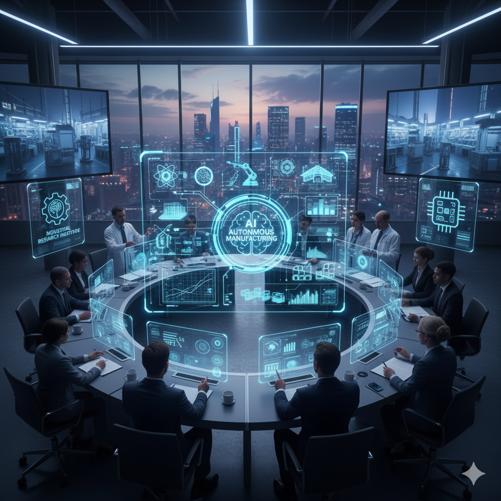여러 기관이 협력하여 AI 자율제조 기술을 개발하는 모습
