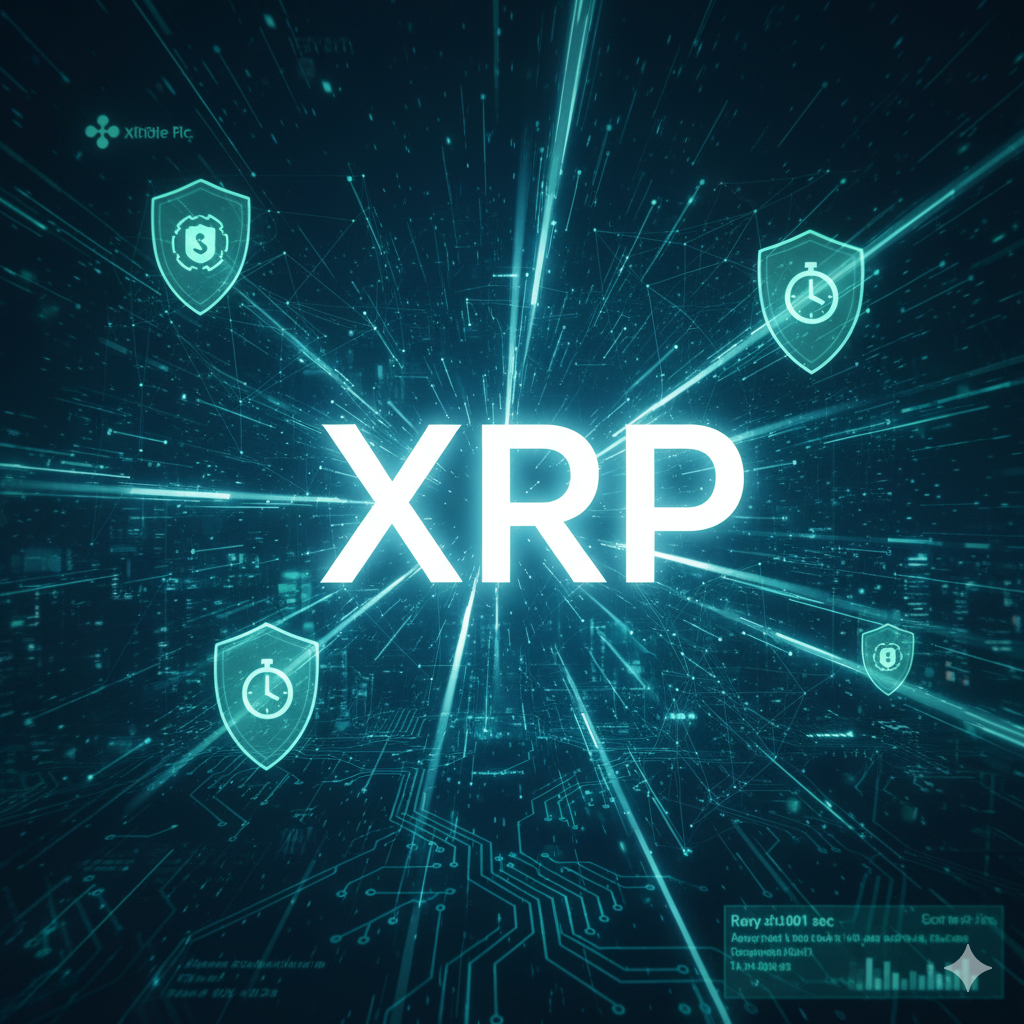 리플 XRP의 빠르고 안전한 기술적 특징을 시각화한 이미지입니다.