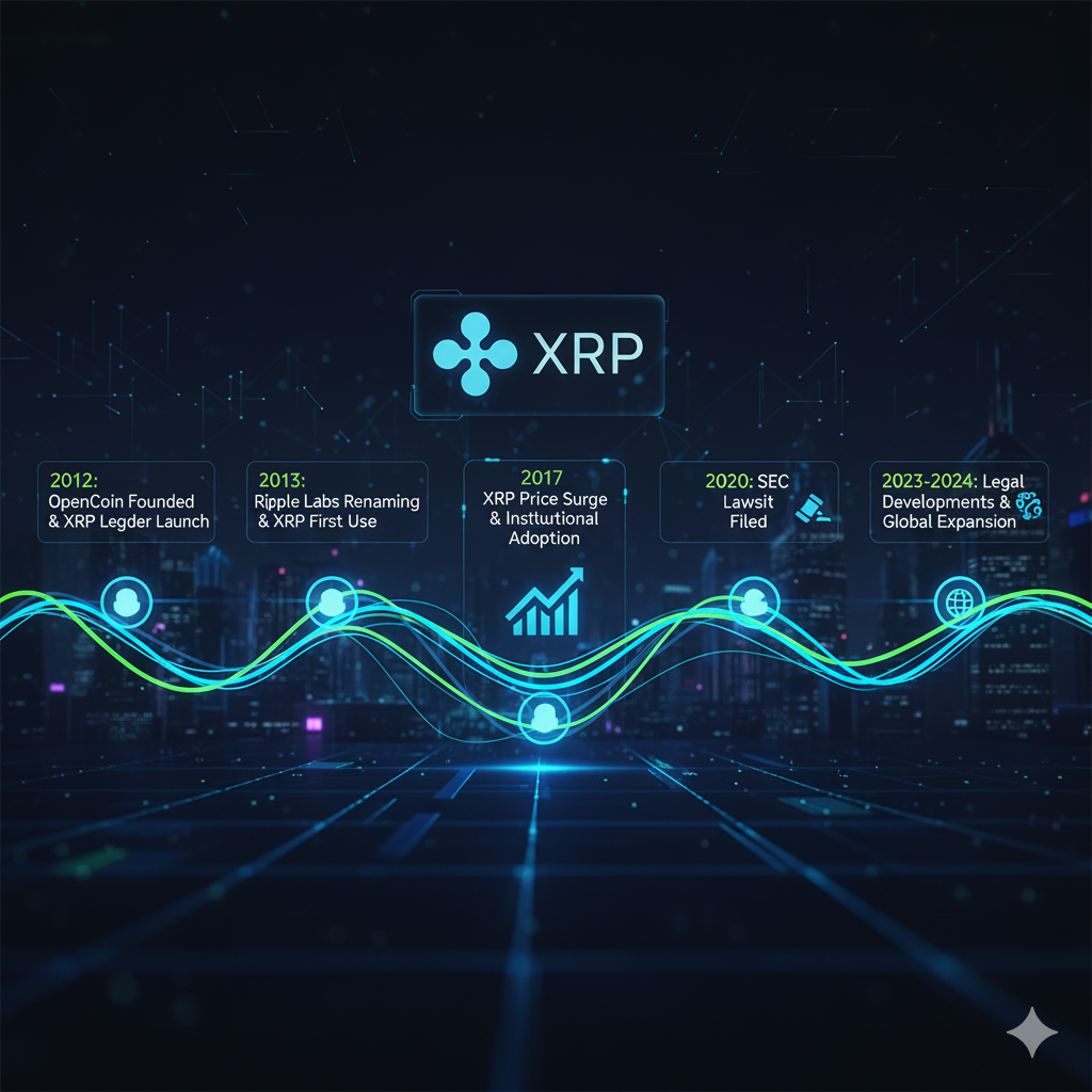 리플 XRP의 역사와 주요 사건들을 나타내는 이미지입니다.