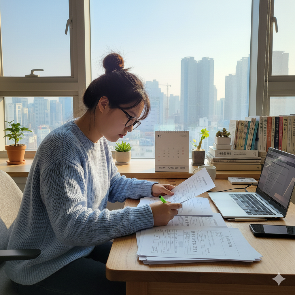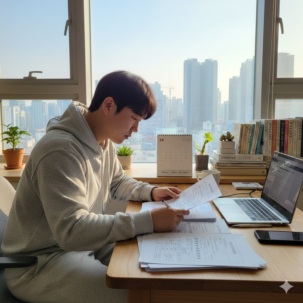 신청 서류를 꼼꼼히 준비하는 청년