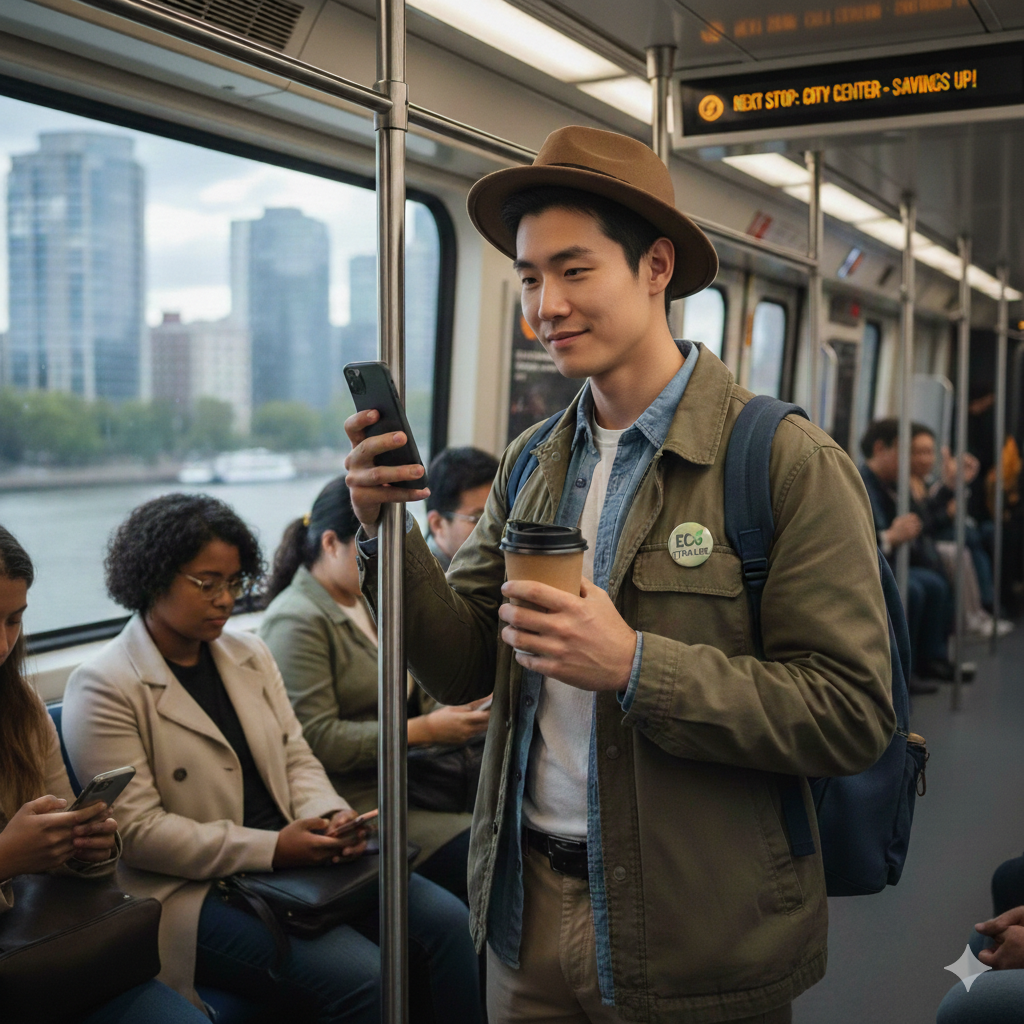 대중교통을 이용하며 교통비를 절약하는 청년