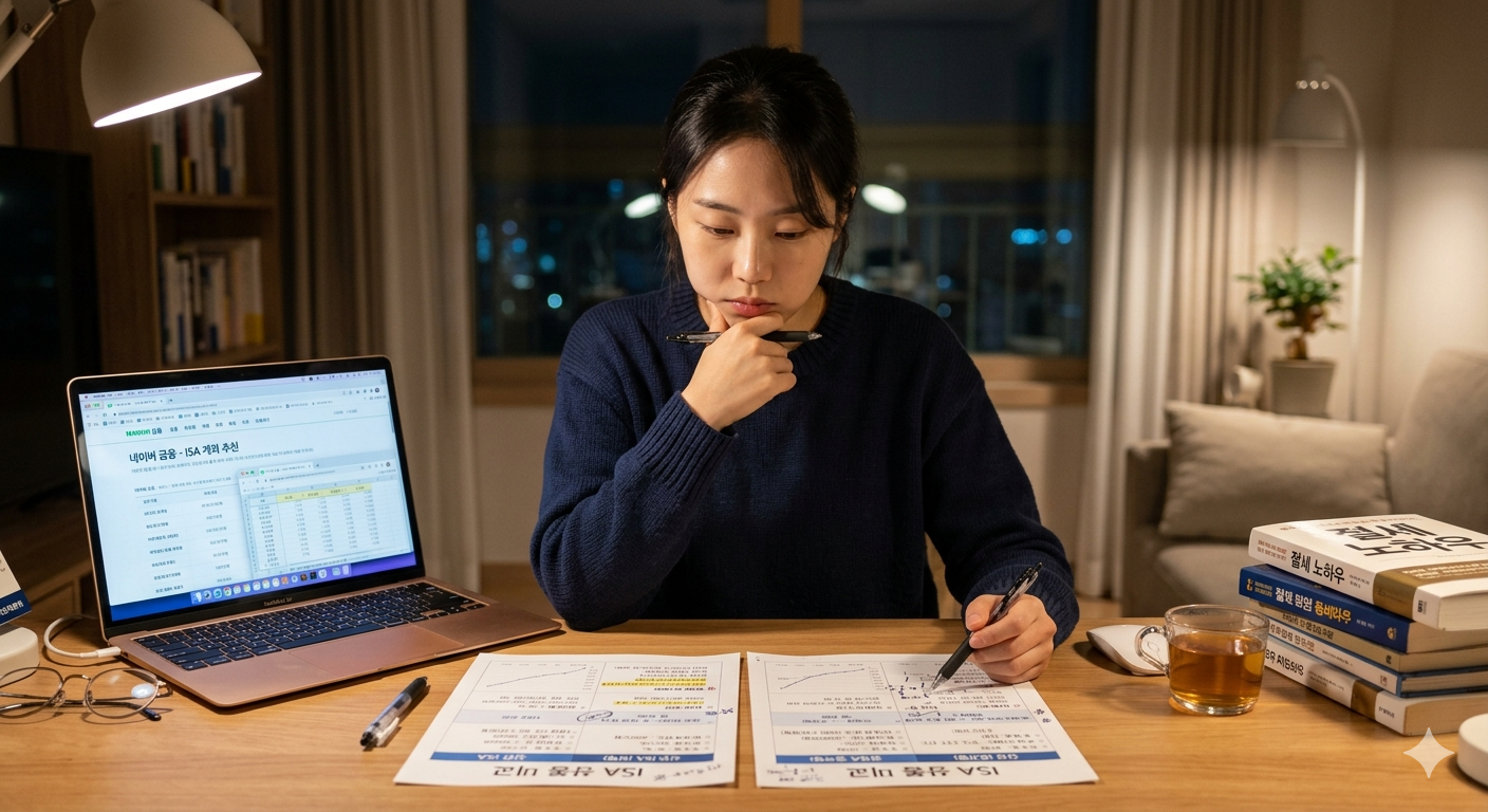 두 개의 ISA 계좌를 비교하며 고민하는 모습