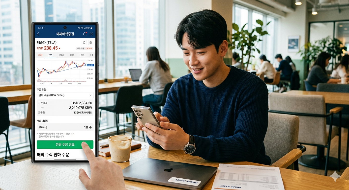 증권사 앱을 통해 해외 주식을 원화로 주문하는 모습