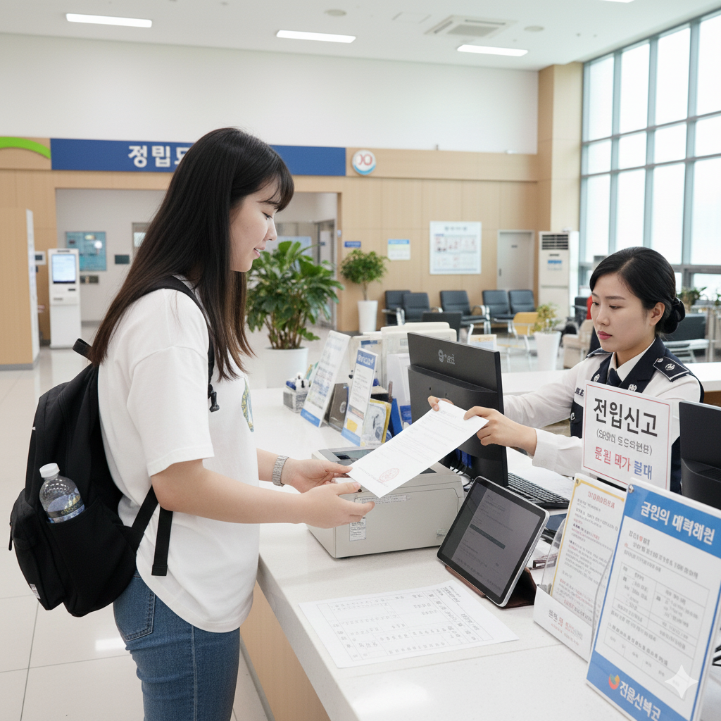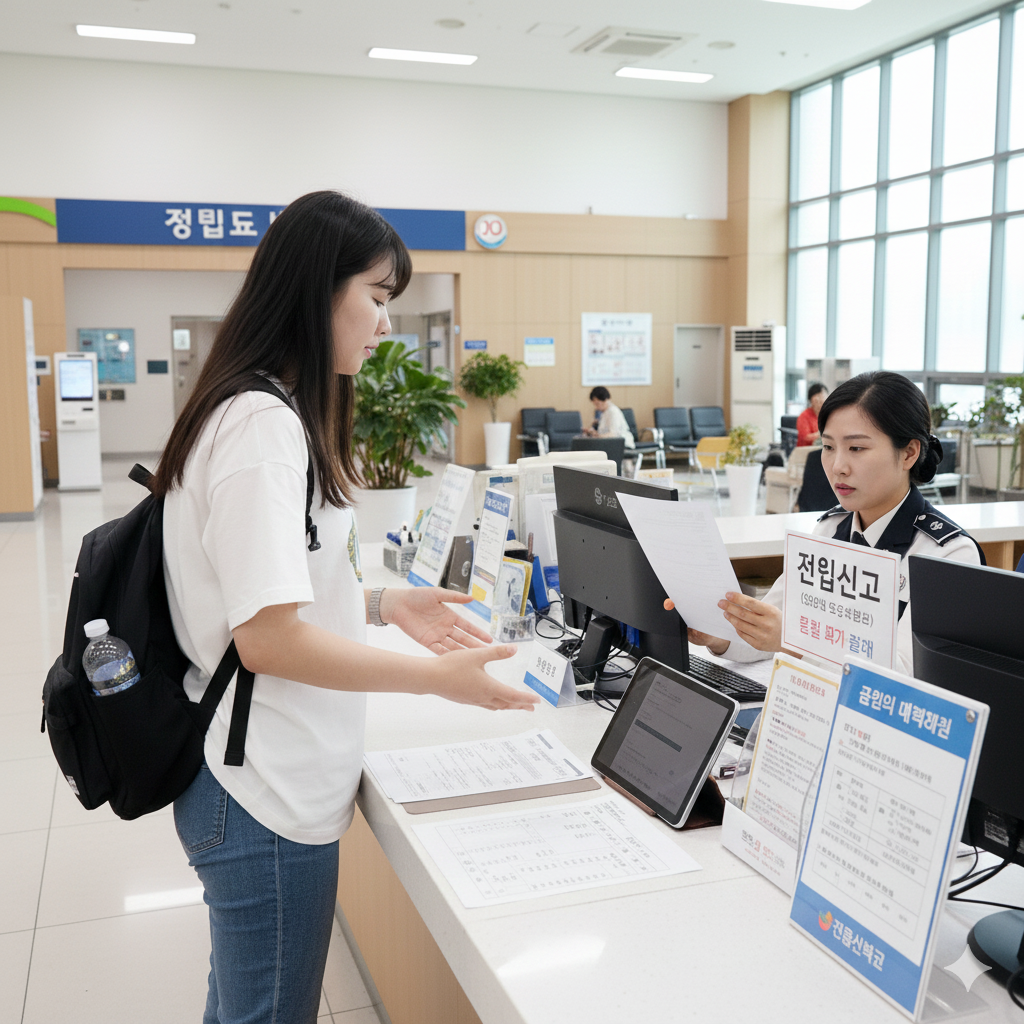 주민센터에서 전입신고를 하는 모습