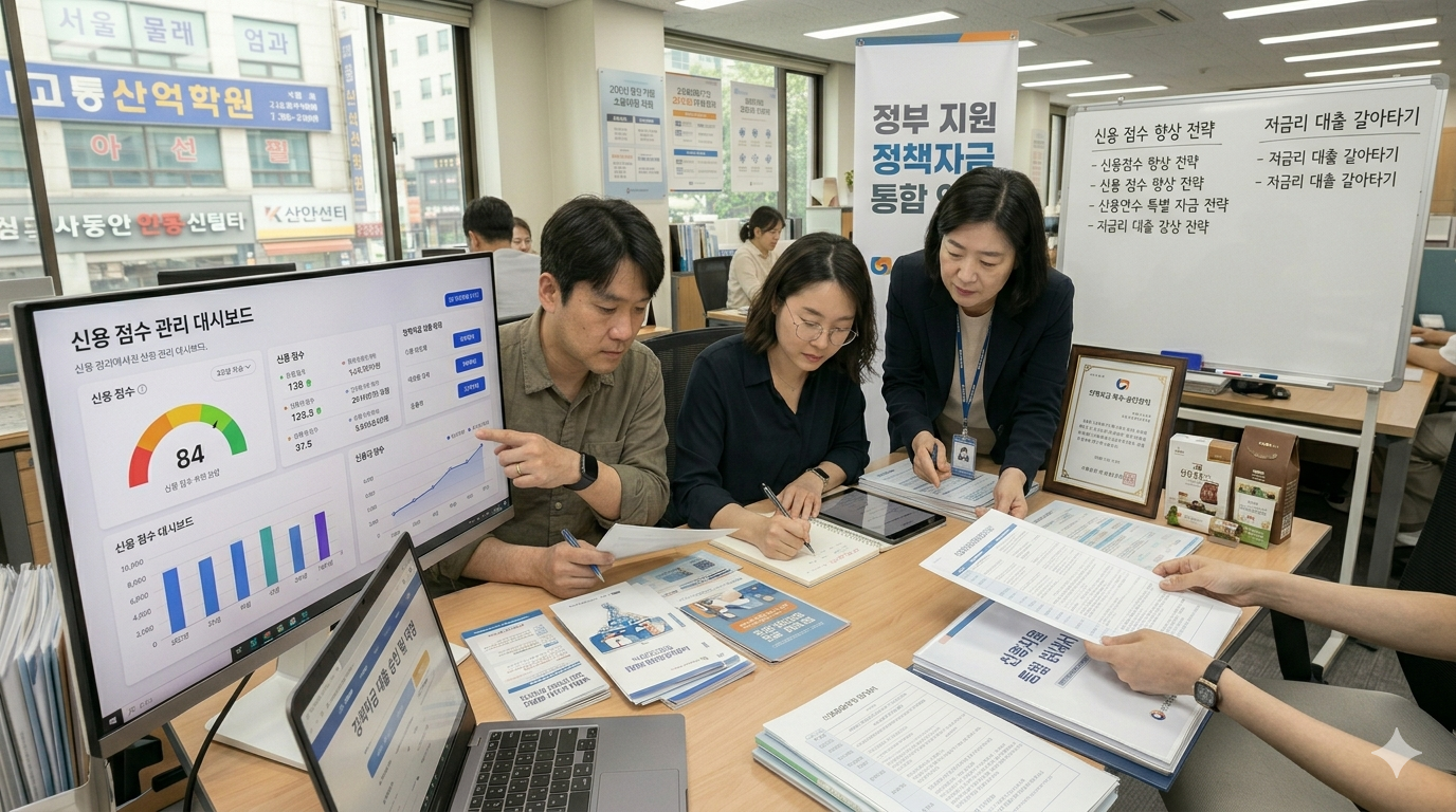 신용 관리를 통해 자금 지원을 받는 소상공인 모습