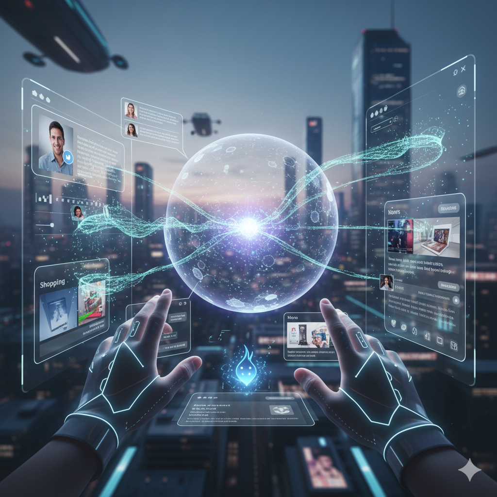 AI 기술로 더욱 스마트해질 미래 웹 환경을 시각적으로 표현했습니다.