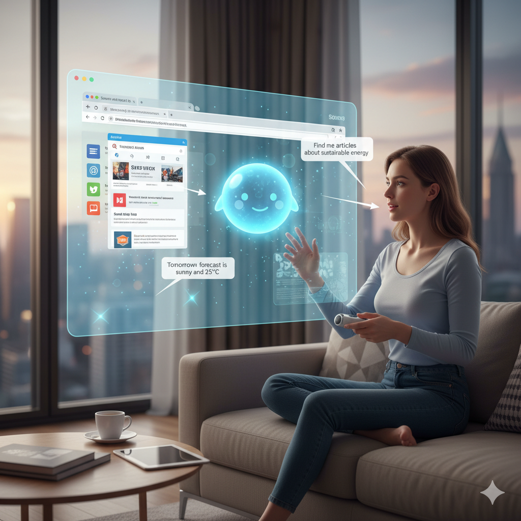 사용자가 AI와 쉽게 대화하며 웹 서핑하는 모습을 표현했습니다.