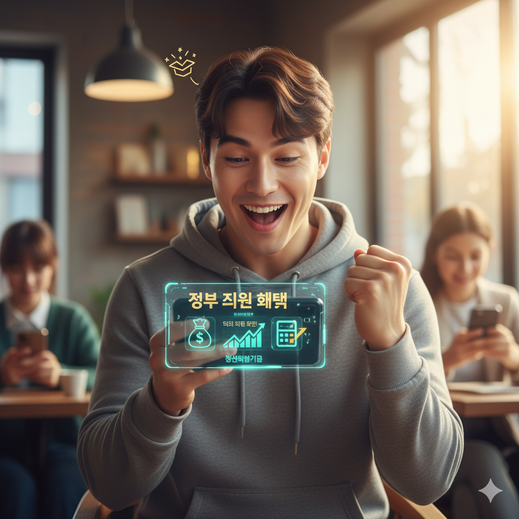 정부 지원 혜택을 확인하며 기뻐하는 청년의 모습