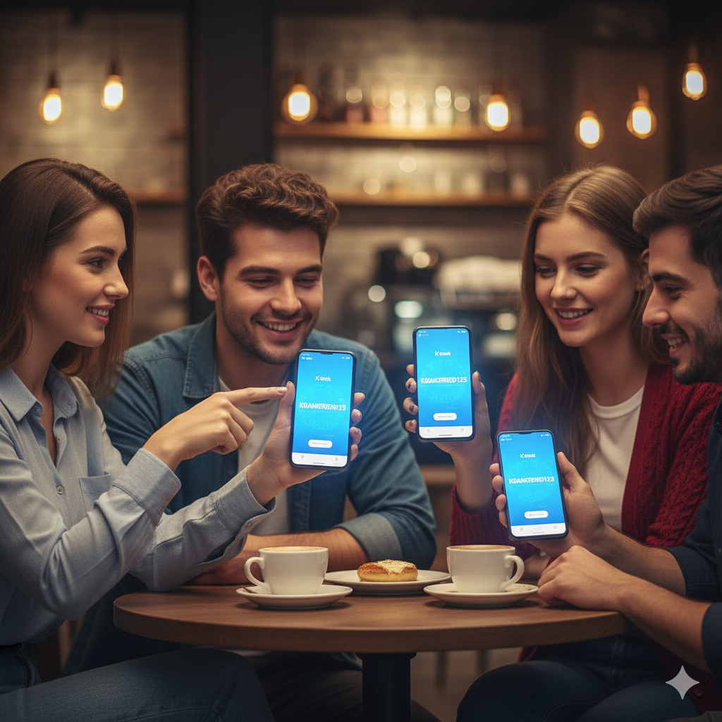 스마트폰으로 케이뱅크 추천인 코드를 공유하는 사람들