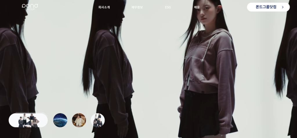 패션과 물류로 나뉘는 사업 전략 / 폰드그룹 홈페이지 메인 화면