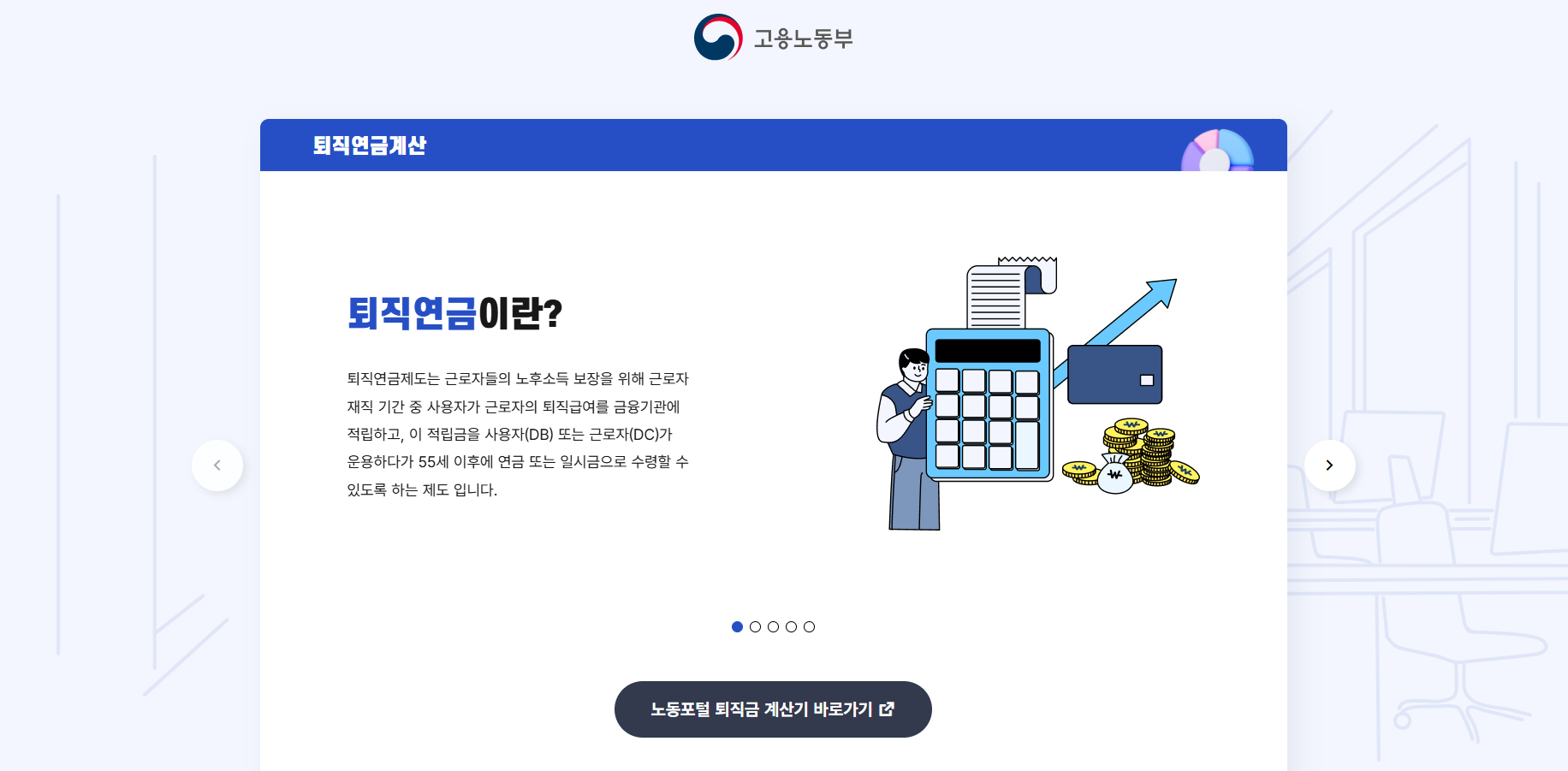 고용노동부 홈페이지 사이트에서  퇴직연금 보호의 중요성을 강조하는 모습