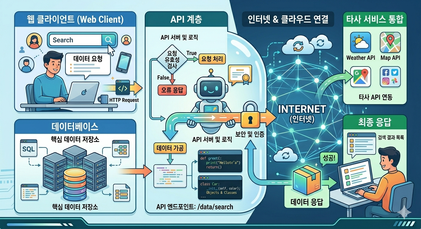 현대 소프트웨어 개발에서 웹과 API(Application Programming Interface)는 빼놓을 수 없는 중요한 개념입니다. 이들을 이해하면 내 프로그램이 다른 서비스와 어떻게 데이터를 주고받는지 알 수 있고, 더 확장성 있는 프로그램을 만들 수 있습니다.