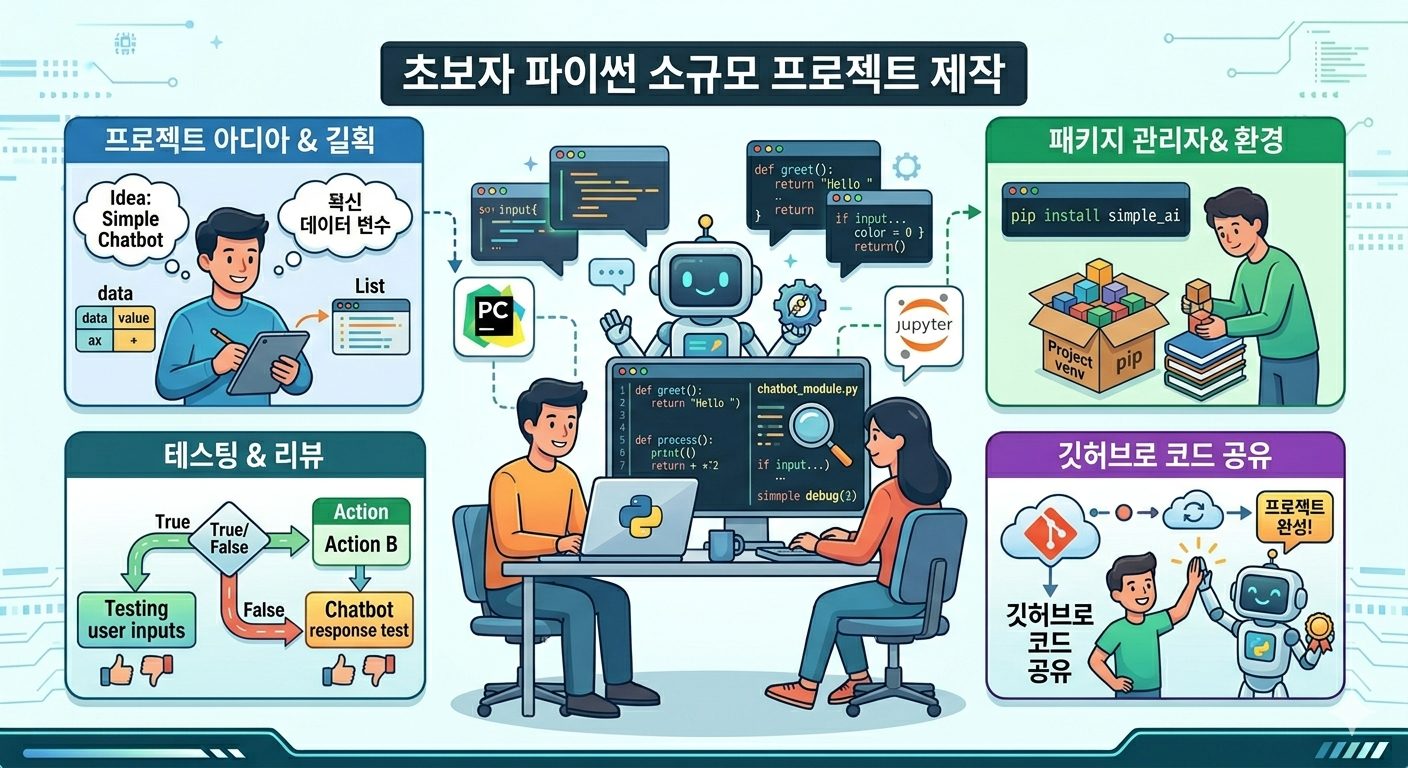 초보자가 파이썬으로 소규모 프로젝트를 만드는 모습을 보여주는 이미지