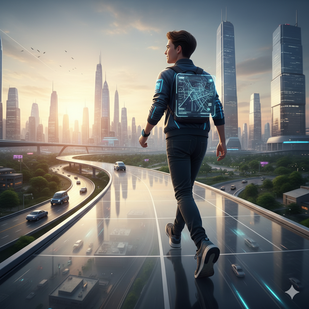 미래를 향해 나아가는 청년의 모습을 담은 이미지입니다.