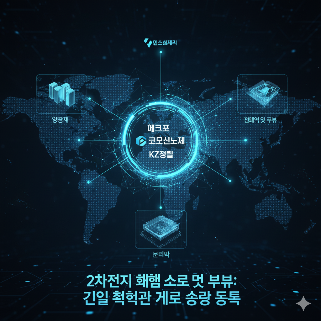 에코프로, 코스모신소재, KZ정밀 등 2차전지 핵심 소재 및 부품 분야에서 뛰어난 기술력으로 성장하는 기업들을 상징하는 사진입니다.