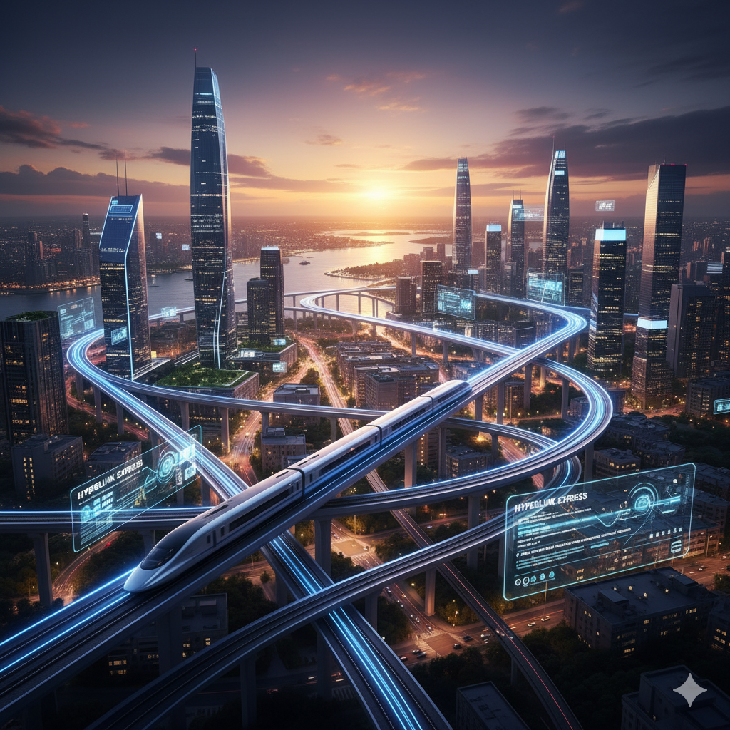 새로운 고속철도 노선이 도시를 연결하는 모습을 표현한 이미지입니다.