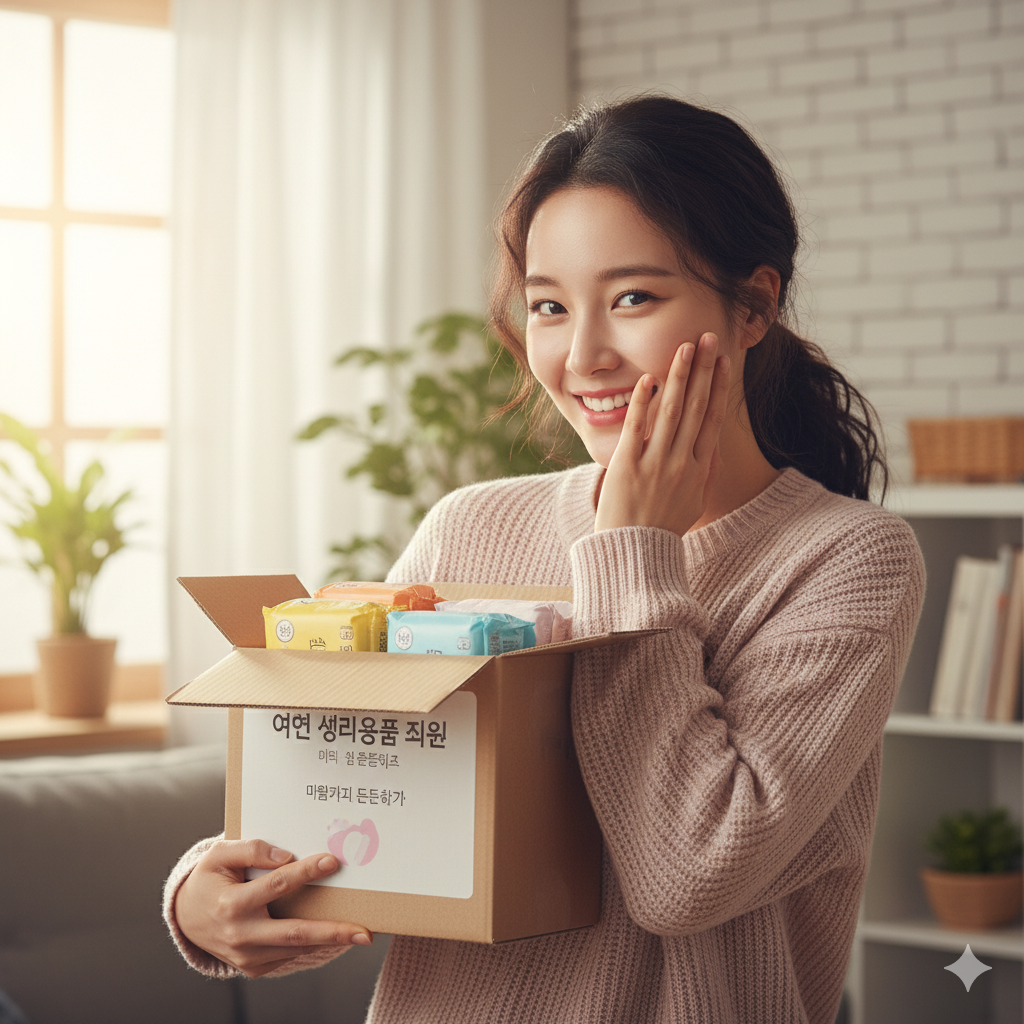 생리용품 지원을 받아 기뻐하는 여성의 모습