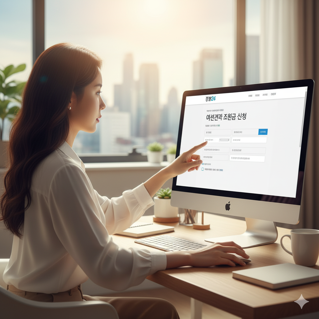 정부24 웹사이트에서 여성건강 지원금을 신청하는 여성의 모습