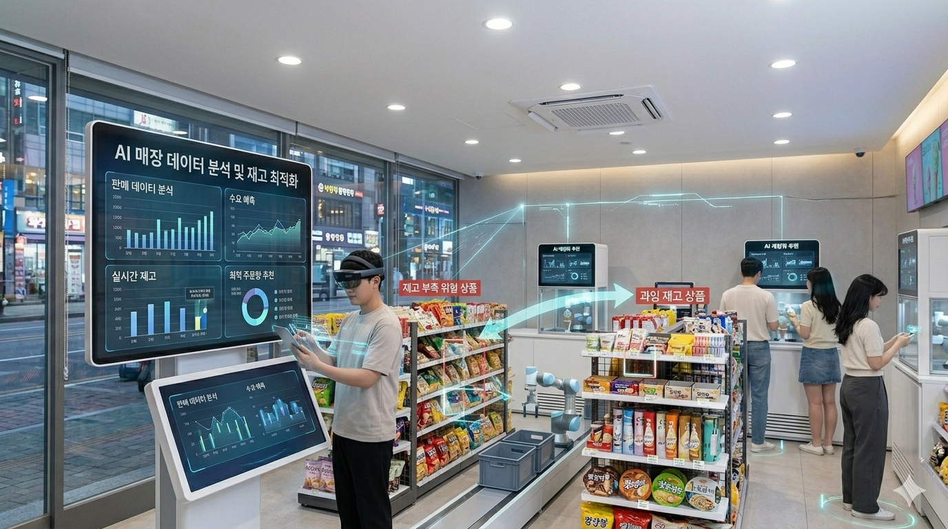AI가 매장 데이터를 분석하여 재고를 최적화하는 모습
