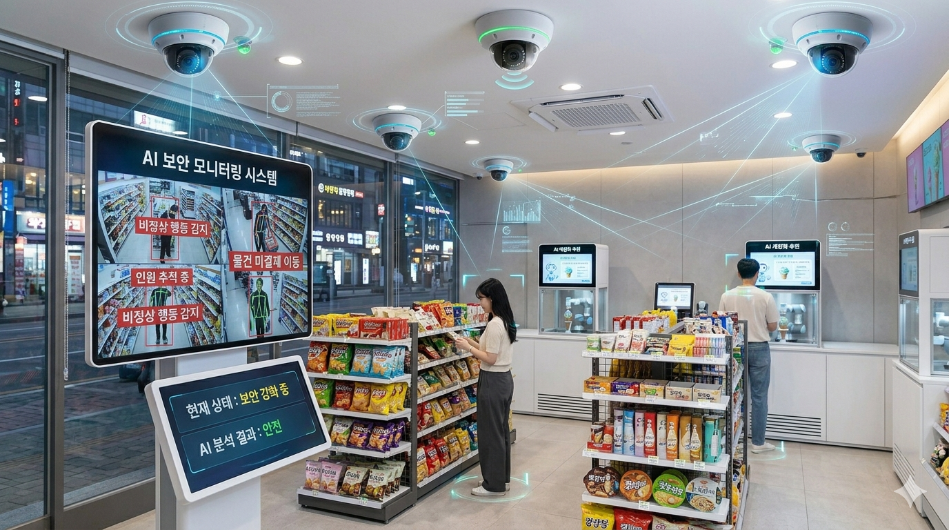 AI 지능형 CCTV가 무인 매장의 보안을 강화하는 모습