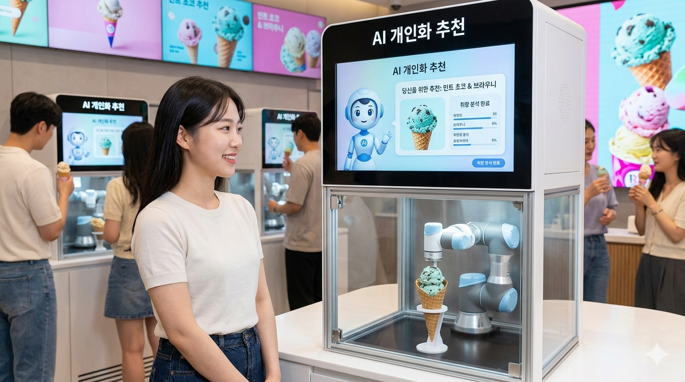 키오스크에서 AI가 개인화된 아이스크림을 추천하는 모습