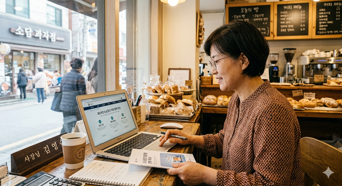 노트북으로 정책 자료를 확인하는 소상공인