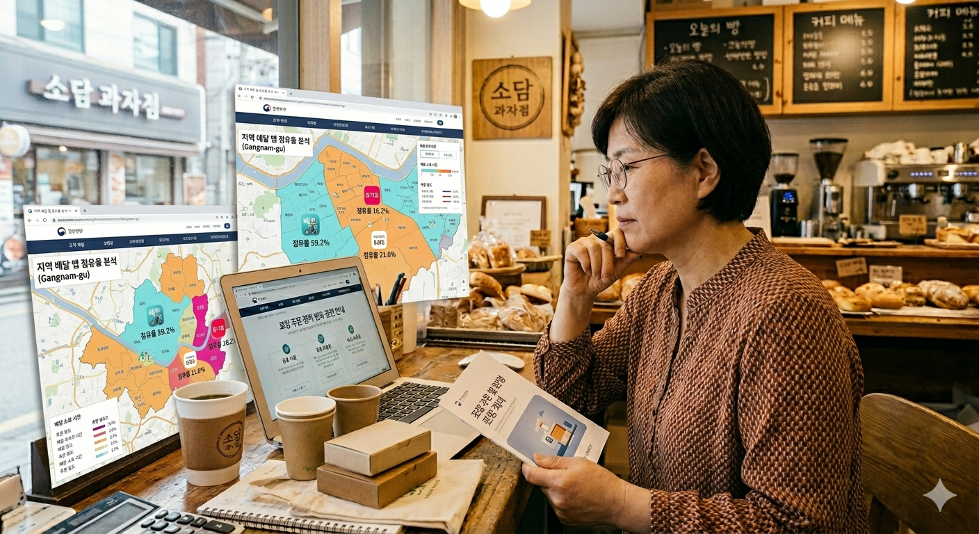 지도를 보며 배달 앱 점유율을 분석하는 사장님