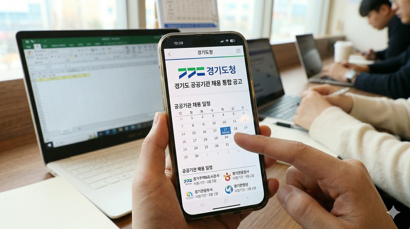 경기도청 로고와 함께 공공기관 채용 일정을 확인하는 모습
