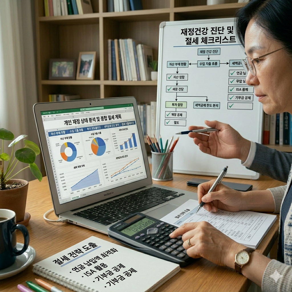 개인의 재정 상태를 분석하고 절세 계획을 세우는 모습