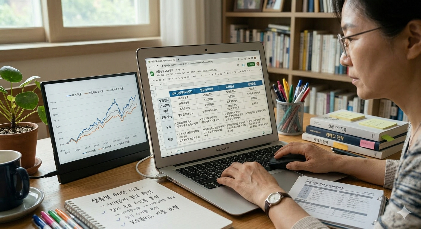 연금 상품의 특징을 비교 분석하는 모습