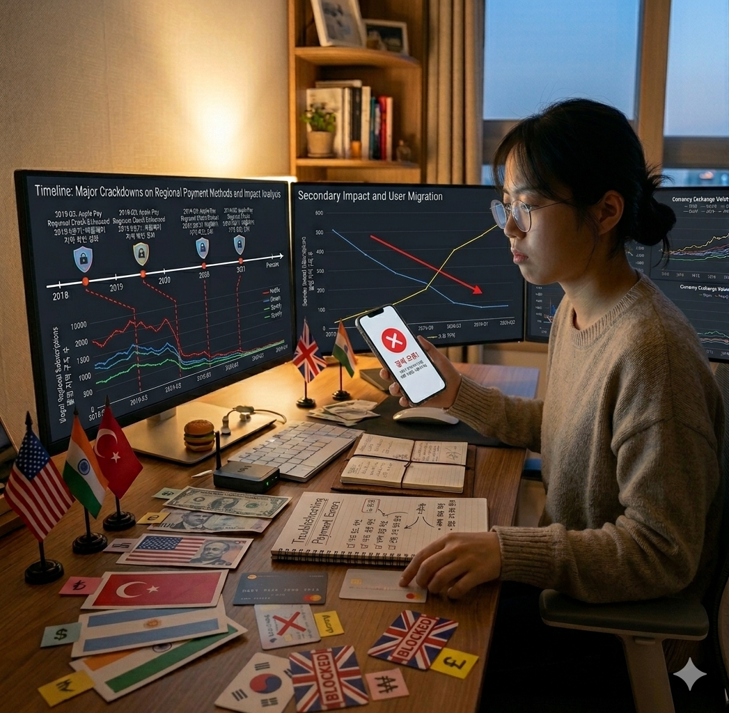 1. 2024년 말: 대대적인 단속 시작, 주요 우회 국가에서 결제 오류 보고 증가.