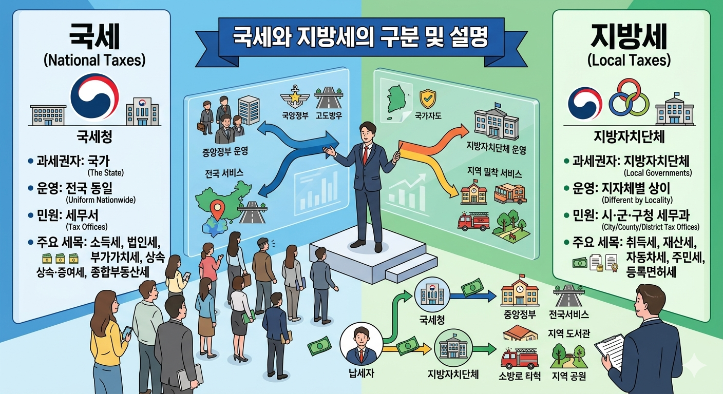 국세와 지방세를 구분하여 설명하는 모습