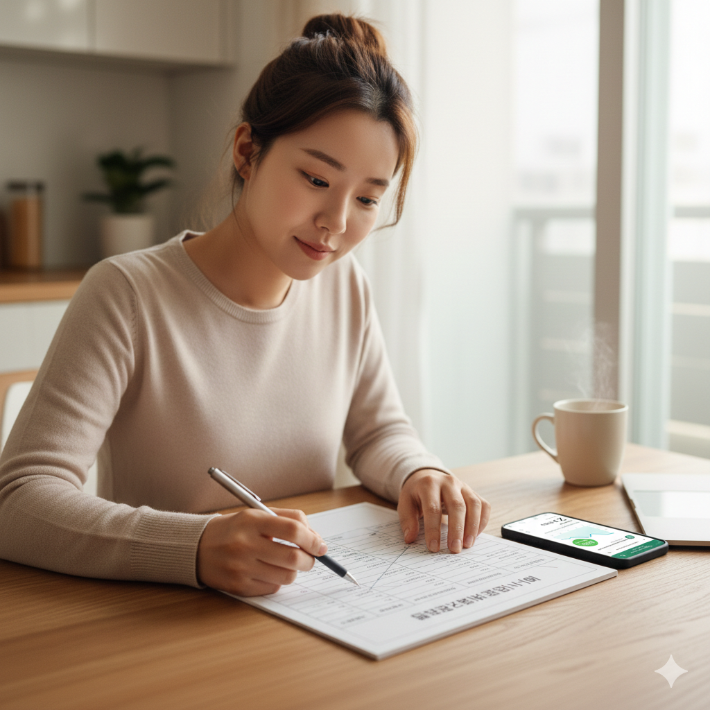 캐시백 신청 자격 조건을 꼼꼼히 살펴보는 모습