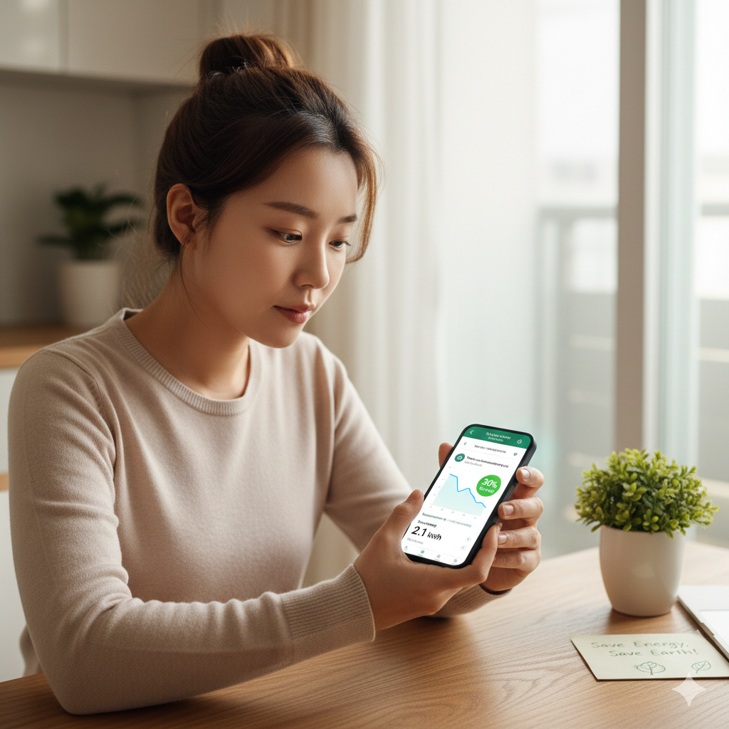 스마트폰 앱으로 전기 사용량을 확인하는 모습