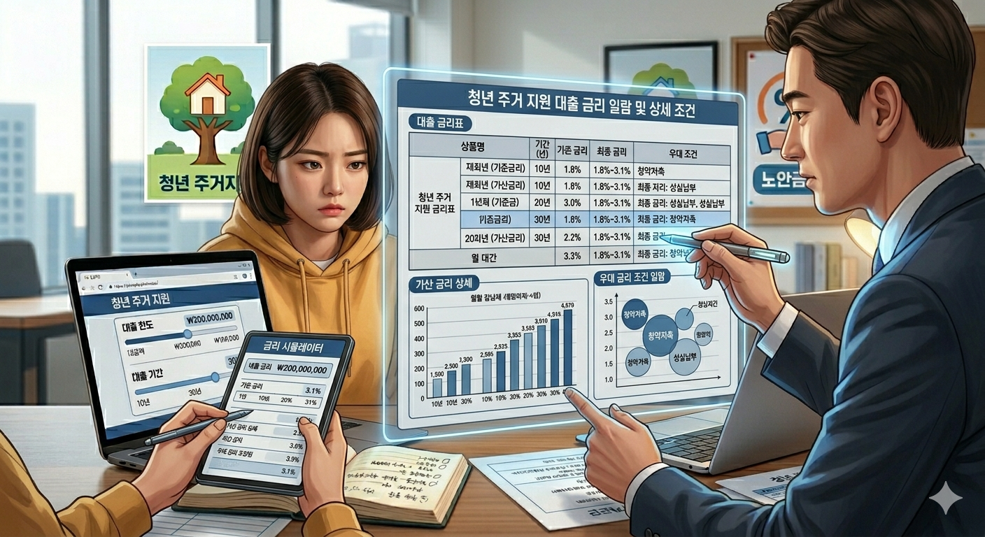 만 25세 미만 청년 가구(60㎡ 이하 주택)에는 연 0.3%p가 적용되며, 중소기업 취업 또는 창업 청년에게도 연 0.3%p(최대 4년)의 우대가 제공됩니다. 지방 주택에 대한 연 0.2%p 우대도 포함되어, 순자산 3.45억 원 이하 청년들에게 총 우대 1.0%p 이상 적용되는 사례가 많아졌습니다. 이러한 우대 조건들을 잘 조합하면 이자 부담을 크게 줄일 수 있습니다.