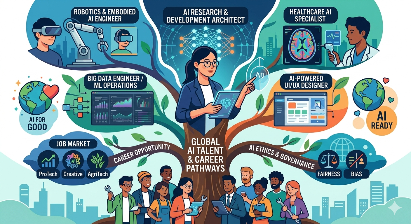 다양한 AI 관련 직업 기회를 상징하는 모습