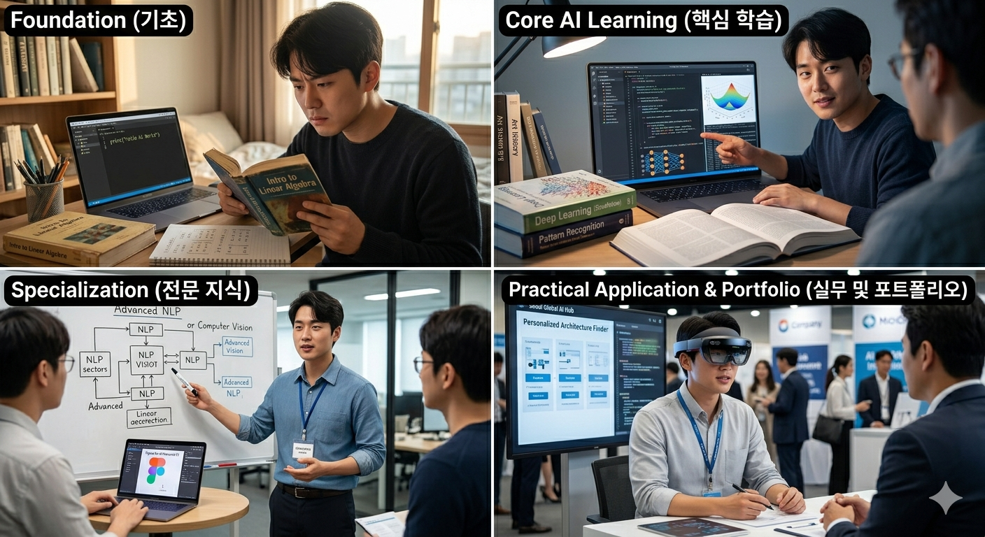 비전공자가 AI 개발자가 되기 위한 학습 과정을 상징하는 모습